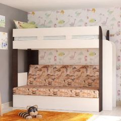 Кровать 2-х ярусная с диваном Карамель 75 (Саванна) Анкор светлый/Бодега