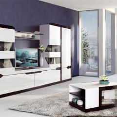 Модульная мебель в современном стиле, выполненная в виде горки. Благодаря сочетанию 2-х контрастных декоров – белого и венге с глянцевыми и матовыми поверхностями, а также оригинальному дизайну двухсторонних стеклянных витрин и декоративному приему стыковки модулей, «Ронда» выглядит эффектно и стильно. Завершают внешний облик белые глянцевые ручки итальянского производства.