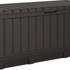 Сундук Кенвуд ёмкостью 350 литров сочетает привлекательный вид с практичными достоинствами, благодаря отделке под натуральное дерево он прекрасно вписывается в окружение любого сада, террасы или патио. Ящик изготовлен из пластика, защищенного от действия ультрафиолетовых лучей, поэтому он сохраняет привлекательный вид, несмотря на неблагоприятные погодные условия, действие солнца и т.п. Уход банально прост: достаточно время от времени протирать ящик.