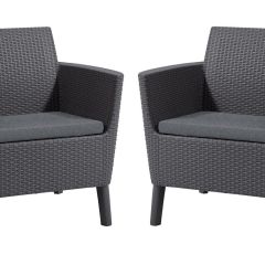 Современная обтекаемая форма, удобство и высокое качество изготовления – это основные достоинства Salemo. В состав комплекта входят два вместительных кресла с подушками сиденья. Фактура поверхности, имитирующая натуральное ротанговое плетение, повышает эстетическую ценность продукта. Мебель легко содержать в чистоте, она проста в монтаже и устойчива к действию неблагоприятных погодных условий.